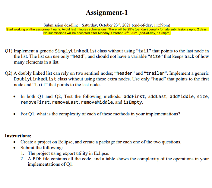 Solved Q1 Implement A Generic Singlylinkedlist Class Chegg Com